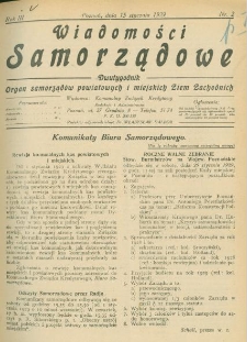 Tytuł: Wiadomości Samorządowe: dwutygodnik. Organ samorządów powiatowych i ziemskich Ziem Zachodnich R. 3 1929 numer 2 (15 stycznia1929), strony 21-36