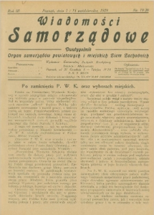 Tytuł: Wiadomości Samorządowe: dwutygodnik. Organ samorządów powiatowych i ziemskich Ziem Zachodnich R. 3 1929 numer 19/20 (1 i 15 października 1929), strony 297-312