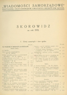 Tytuł: Wiadomości Samorządowe: dwutygodnik. Organ samorządów powiatowych i ziemskich Ziem Zachodnich. Skorowidz za rok 1931