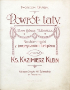 Title: Powrót taty : słowa Adama Mickiewicza : na chór męski z towarzyszeniem fortepianu : utworzył ks. Kazimierz Klein