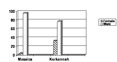In the games depicted in the mosaics, we can notice a clear-cut separation between sexes. It appears that the low participation of women in the games (4%) can be explained by the brutal character of physical play activities. On the other hand, in 33% of the Kerkennah games, females and males accept mutual participation. This leads to more equality between the two sexes. It appears here that the human and religious value of granting supremacy to men was replaced by another “ideological” and universal value, i.e. equal opportunities for both sexes.
