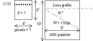 Skaner: maksymalna szerokość skanowania 210mm=8,27cali, 4960 elementów CCD. Gdy soczewki układu optycznego zogniskują całą szerokość 210mm na 4960 elementach CCD, to rozdzielczość optyczna skanera wyniesie: