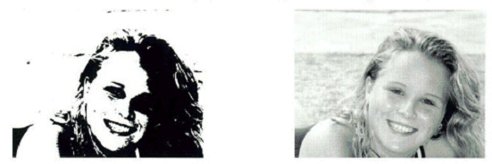 Kompresja stratna lepiej się sprawdza tam, gdzie algorytmy bezstratne nie mogą dać istotnego zmniejszenia rozmiaru pliku, czyli w przypadku obrazów tonalnych, a szczególnie takich, które zawierają płynne, ciągłe przejścia kolorów. Stopień utraty informacji uzależniony jest od stopnia kompresji. Zazwyczaj dosyć wyraźnie można zauważyć próg do którego obraz pozostaje "wizualnie bezstratny". Po jego przekroczeniu zniekształcenia stają się wyraźne i możemy na przykład uzyskać efekt taki, jak przedstawiony na Rys. 6.1 gdzie przy dużym powiększeniu widoczne są duże kwadraty pikseli o uśrednionych poziomach i znikają drobne szczegóły takie jak na przykład rzęsy.