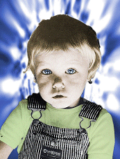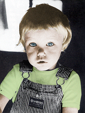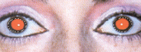 Jeżeli ma się odrobinę szczęścia można uniknąć uszkodzenia naturalnych odbłysków w oczach podczas usuwania zniekształceń. W przedstawionym przykładzie udało się zachować naturalne rozbłyski. Aby odtworzyć odbłyski w oczach można użyć małego pędzla bez wygładzania krawędzi i wypełnienie biały kolor. Następnie ostrożnie odtworzyć jasne piksele w oczach uwzględniając kierunek i lokalizację światła na danej fotografii. |