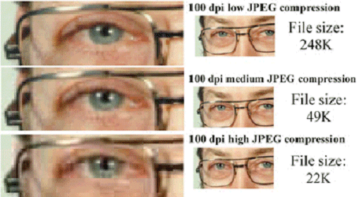 Jak widać na obrazach : trudno dostrzec jakiekolwiek różnice, a zyskuje się znacznie mniejszy plik w tym przypadku do 96%. Obraz w jpeg idealnie nadaje się do zastosowania w sieci WWW.
