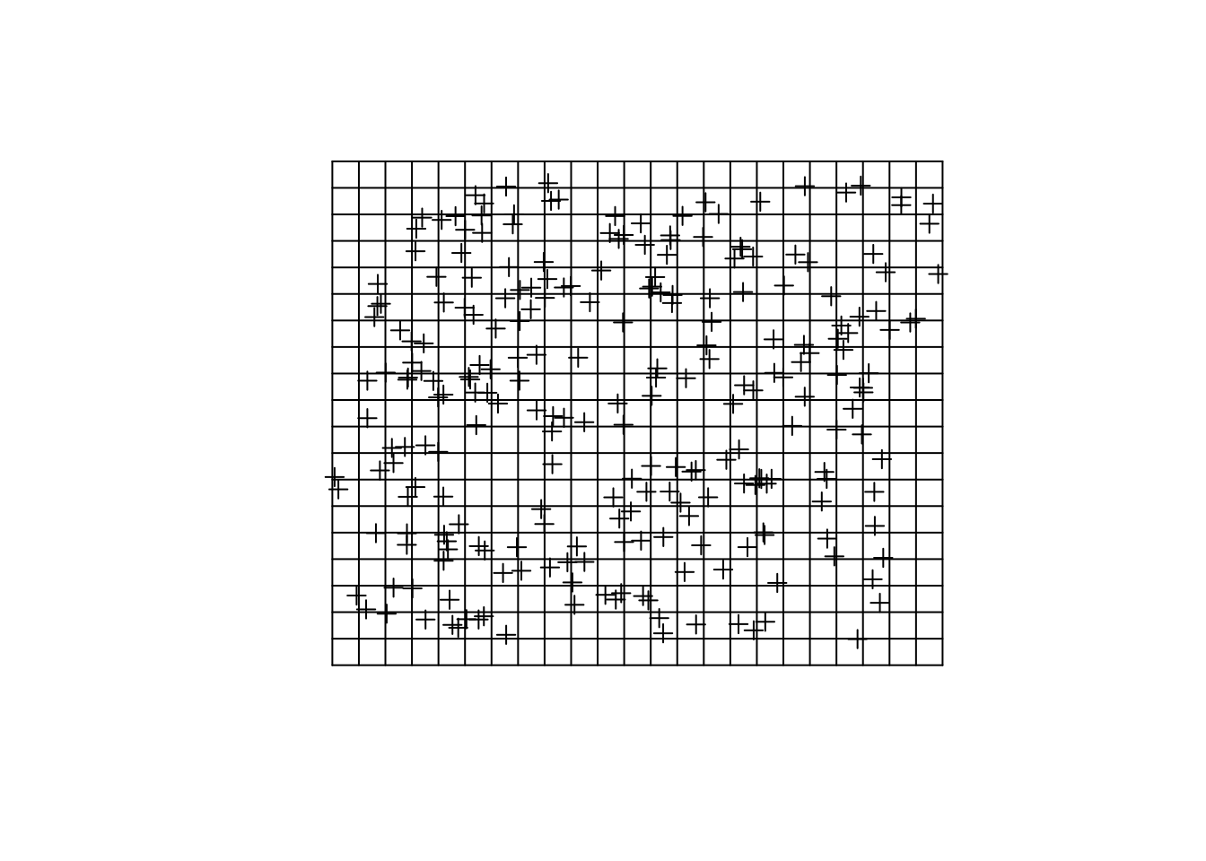 Siatki regularne mają kształt prostokąta obejmującego cały analizowany obszar. Określenie granic obszaru można wykonać na podstawie zasięgu danych punktowych za pomocą funkcji bbox() z pakietu sp lub funkcji extent() z pakietu raster.