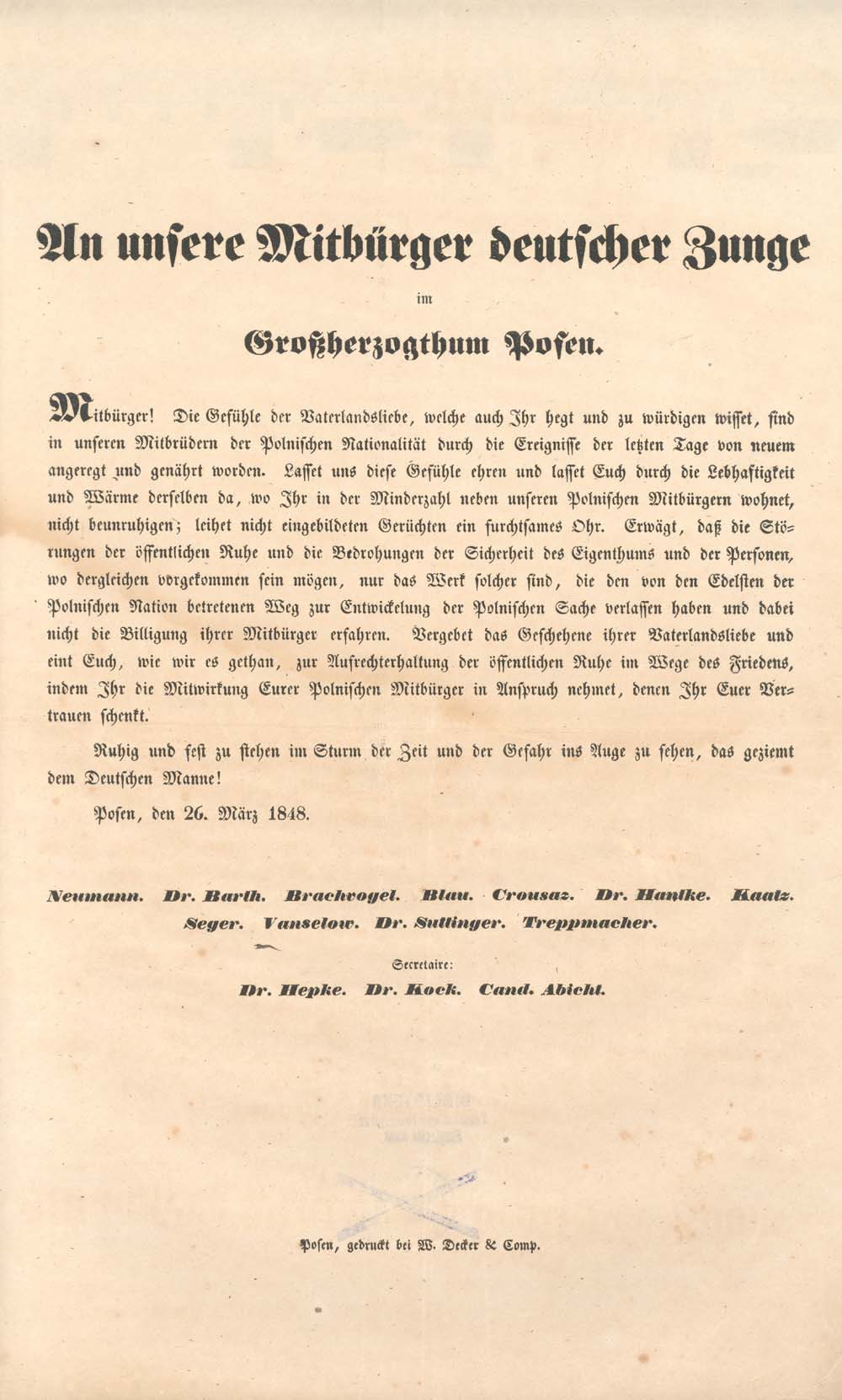 An unsere Mitbuerger deutsche Zunge im Grossherzogthum Posen.