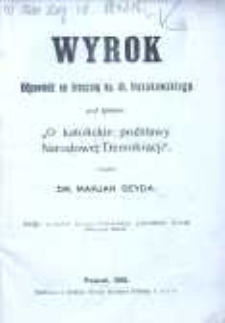 Title: Wyrok - odpowiedź na broszurę ks. dr F. Hozakowskiego pod tytyłem " O katolickie podstawy Narodowej Demokracji" odbitka artykułów Kuriera Poznańskiego, poprzedzona słowem wstępnym autora