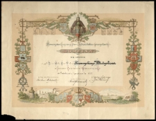 Kolekcja utworzona z okazji, przypadającej w 2024 roku, setnej rocznicy śmierci Władysława Zamoyskiego ; 2 k. (list + dyplom) rys. 49x38 cm ; luźne ; Grafika: herb Winniki, herb Kraków, herb Bochnia, herb Czortków, herb Borszczów, herb Stryj, herb Brzeżany, herb Stanisławów, herb Sambor, herb Kołomyja, herb Rohatyn, herb Kałusz, herb Horodenka, herb Buczacz, herb Dolina, herb Trembowla, herb Tarnopol, herb Złoczów, herb Przemyśl, herb Gródek, herb Drohobycz, herb Nowy Targ, herb Sokal, herb Nadwórna, herb Sanok, herb Lwów, druk kolor. ; Grafika: Maryja.
