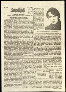 Motto: "Solidarność" nie da się podzielić ani zniszczyć ; W niektórych numerach brak motta ; W niektórych numerach brak drukarni ; fragmentami nieczytelny tekst